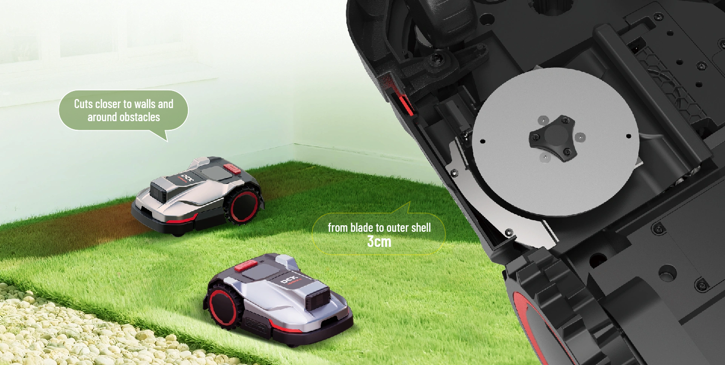 Datorită senzorilor de evitare obstacole (Flash LiDAR + senzor de coliziune), robotul detectează obiecte mici (de la aprox. 3 cm) și lucrează în siguranță, chiar și în grădini cu mobilier, borduri sau elemente decorative. În plus, poate urca pante de până la 45%, ceea ce îl face potrivit și pentru terenuri ușor denivelate.