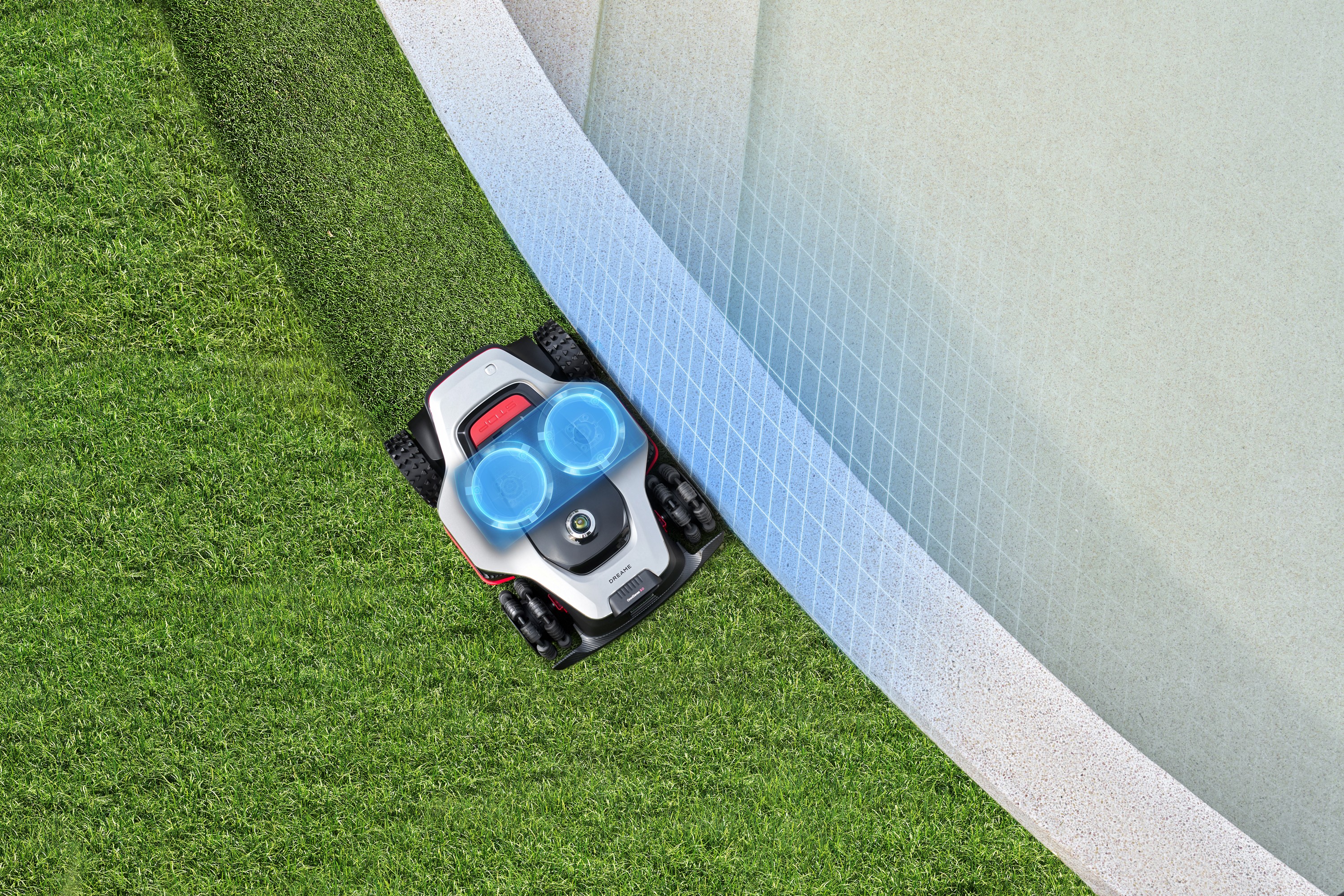 Dreame A3 AWD Pro vine cu EdgeMaster 2.0, cu două platforme de tăiere glisante care permit o tăiere cu distanță de sub 3 cm față de margine (aproape „borderless”).